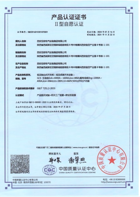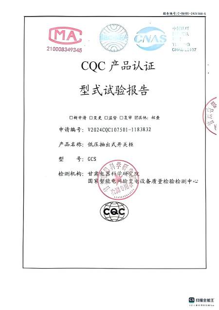 低壓抽出式開關(guān)柜(GCS)資質(zhì):