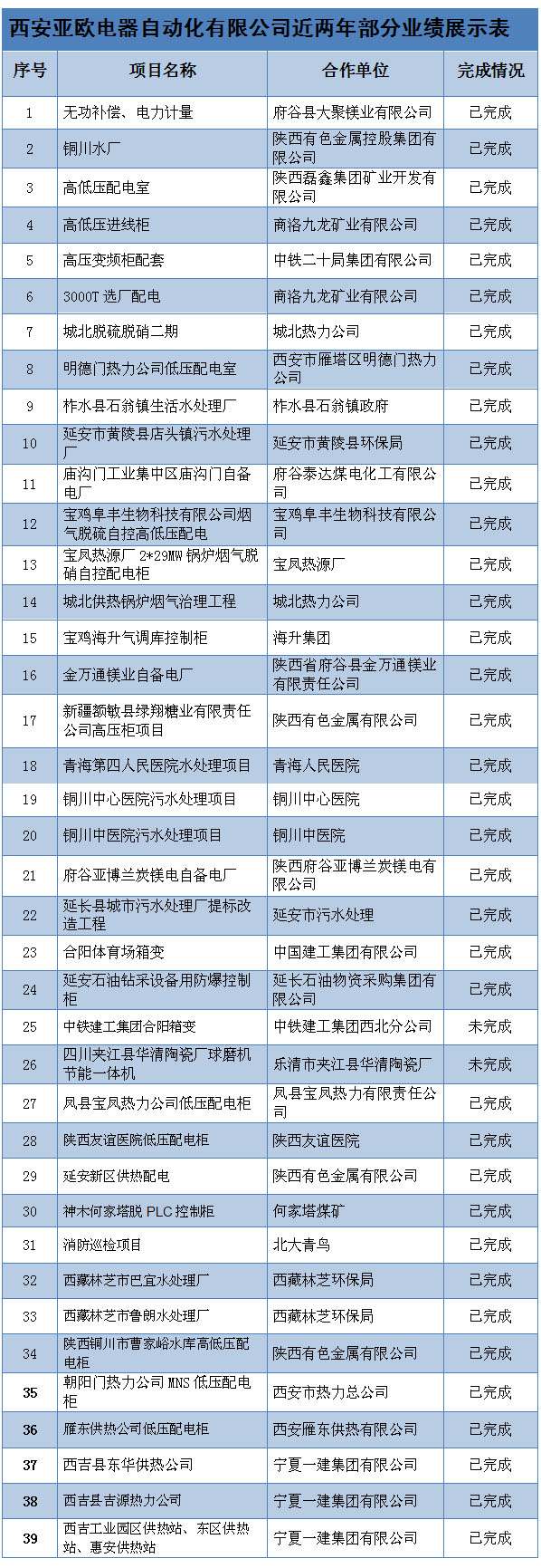 西安亞歐電氣設(shè)備集團(tuán)有限公司近兩年部分業(yè)績展示表